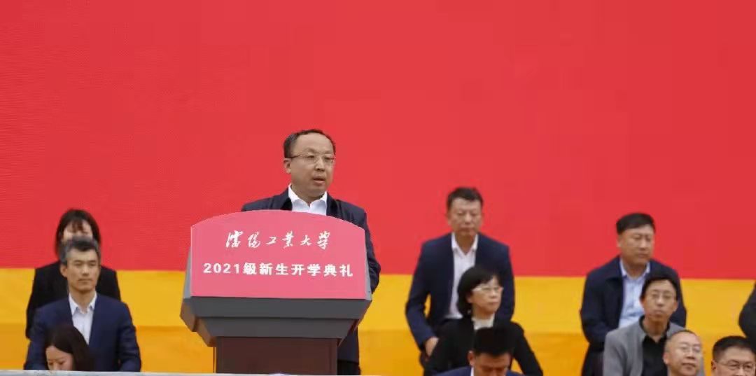 9月29日上午,我校举行2021级学生开学典礼。全体校领导、相关职能部门负责人、二级学院党政负责人、全体学生工作干部和全体2021级本科生、研究生参加开学典礼。