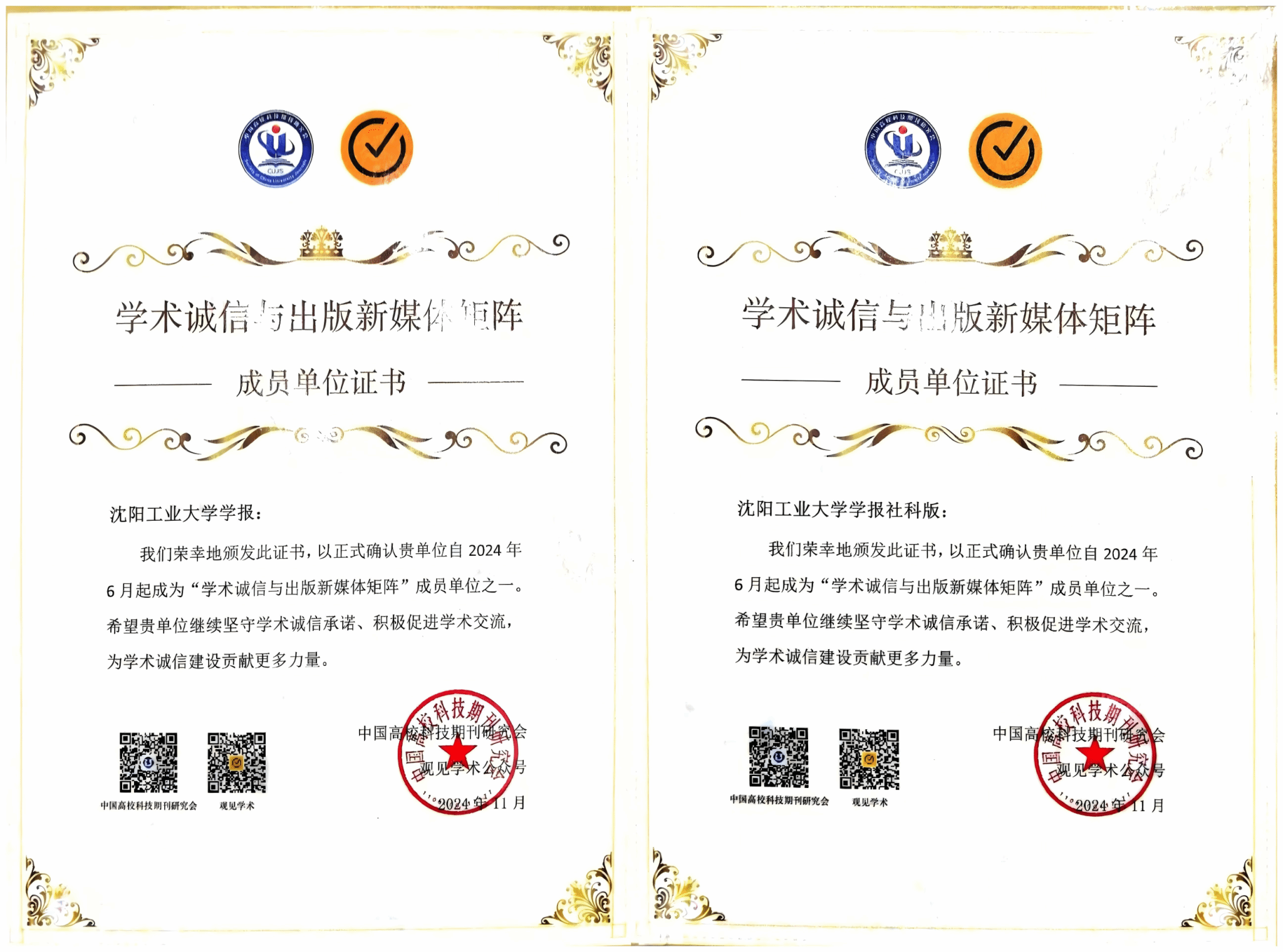 12月16日,中国高校科技期刊研究会第28次年会发布了“2024年度中国高校科技期刊建设示范案例库·杰出/百佳/优秀科技期刊”入库案例,评选出“优秀”案例284个,《国产高清在线精品一区二区三区学报》位列其中。此外,年会同时发布了140家“学术诚信与出版新媒体矩阵”首批成员名单,《国产高清在线精品一区二区三区学报》自然版与社科版双双入选。