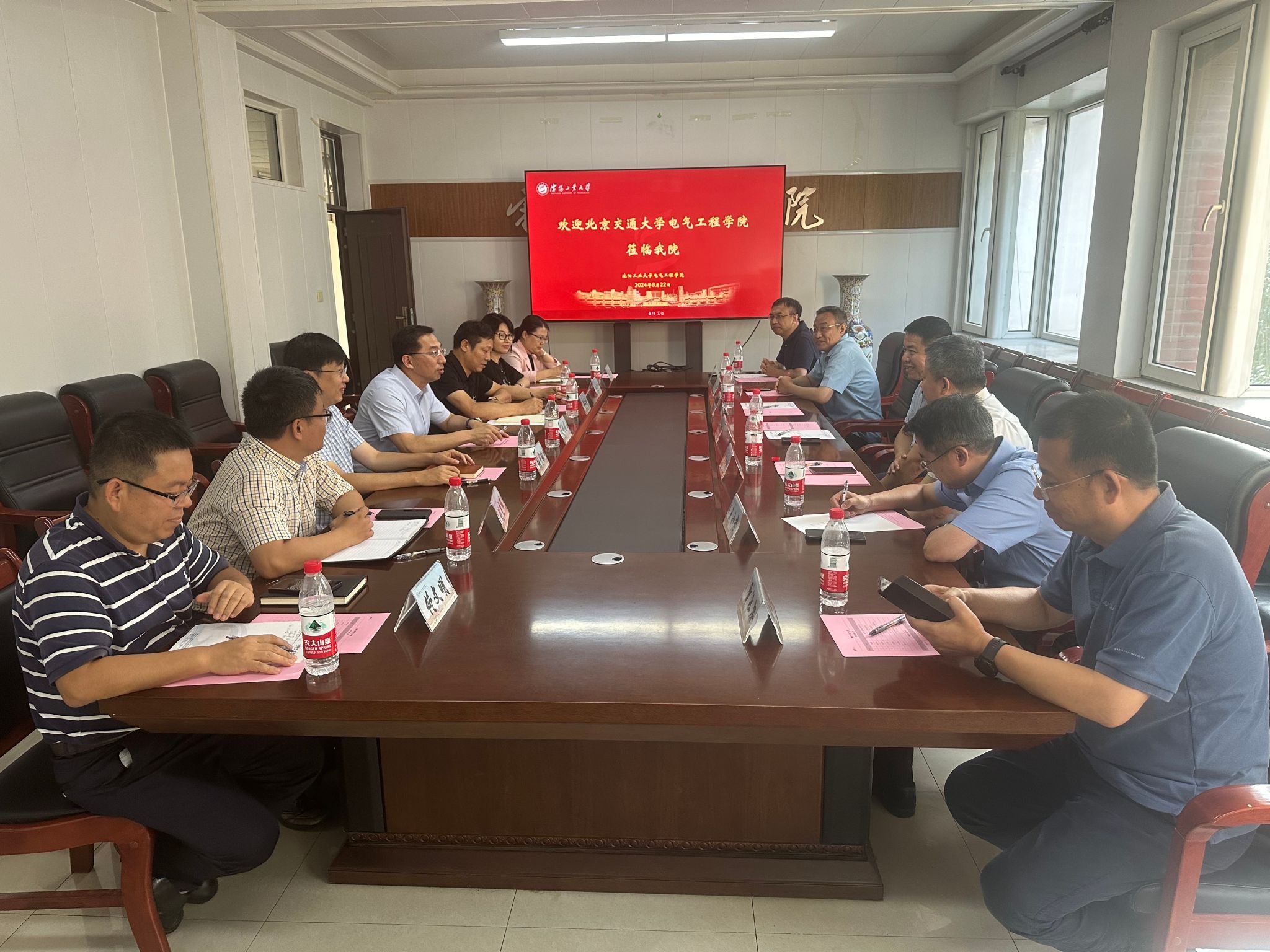 8月22日下午,北京交通大学电气工程学院党委书记王德瑜、院长吴命利一行七人到学校交流座谈,党委常委、副校长夏明超出席并讲话,电气工程学院领导班子参加交流座谈。座谈会由学院党委书记兼副院长韩永强主持。