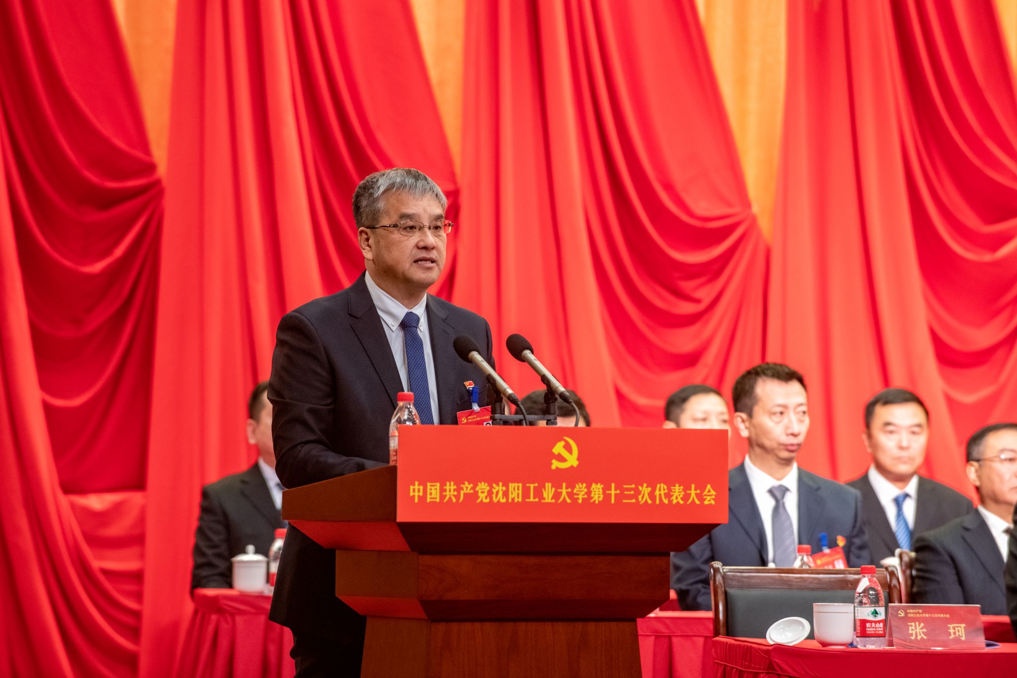 党委书记贾玉明代表学校第十二届委员会向大会作了题为《矢志科教报国 投身辽沈振兴 以高质量发展开创国内一流大学建设新局面》的工作报告。报告共分为四个部分:第十二次党代会以来的工作;新征程学校建设发展的战略部署;未来五年重点任务;坚定不移推进新时代党的建设。